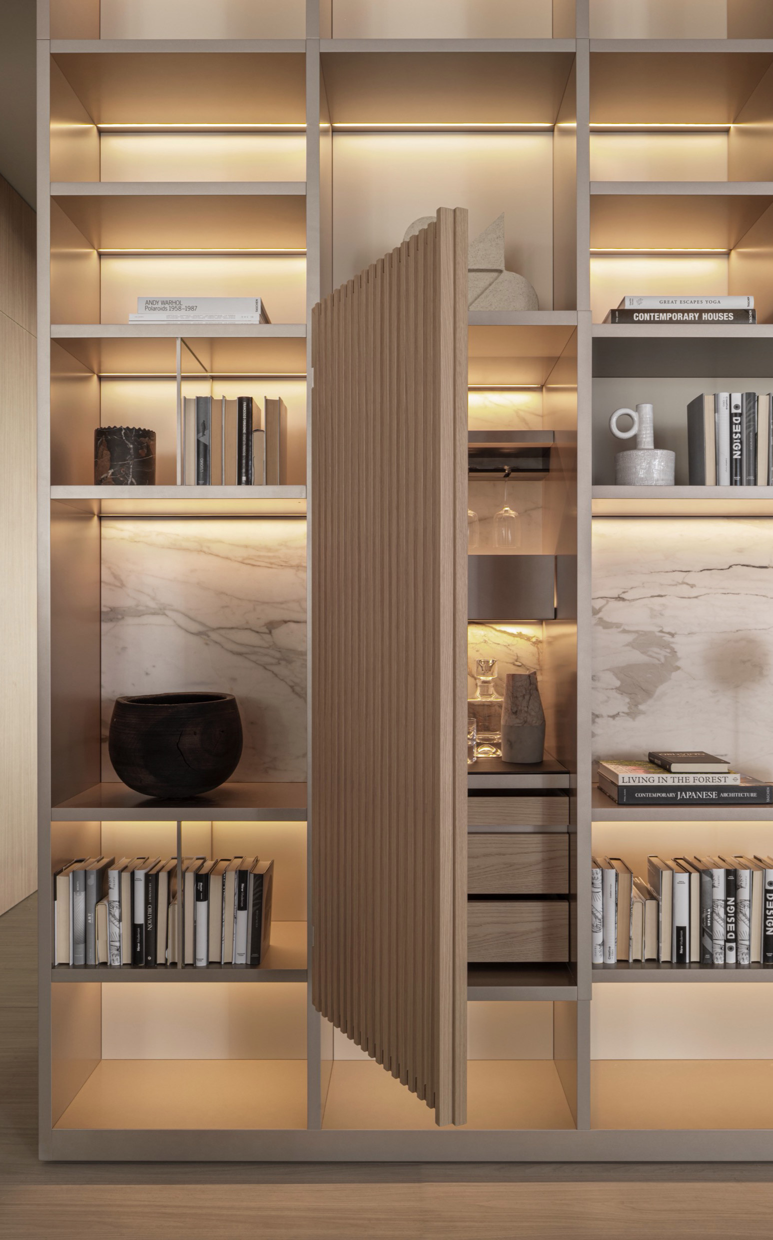 Molteni’s collections, available at SAG’80, offer iconic examples of designer TV walls: modular systems that combine closed storage, open compartments, and backlit panels—ideal for creating an elegant and functional living room. Attention to detail and the quality of finishes make these solutions perfect for high-end interiors.